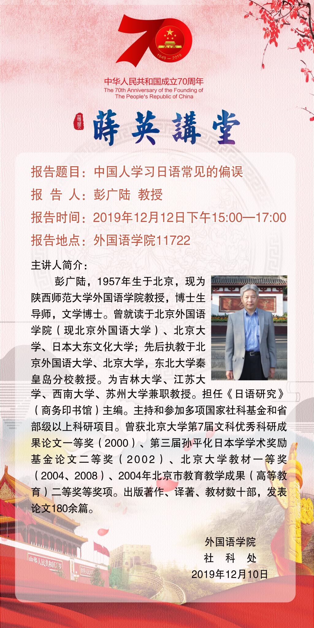【预告】 陕西师范大学彭广陆教授应外国语学院邀请来威尼斯官网作学术报告