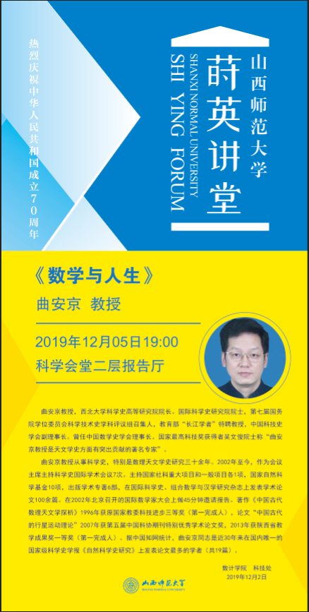 【预告】西北大学曲安京教授应邀来威尼斯官网作学术报告