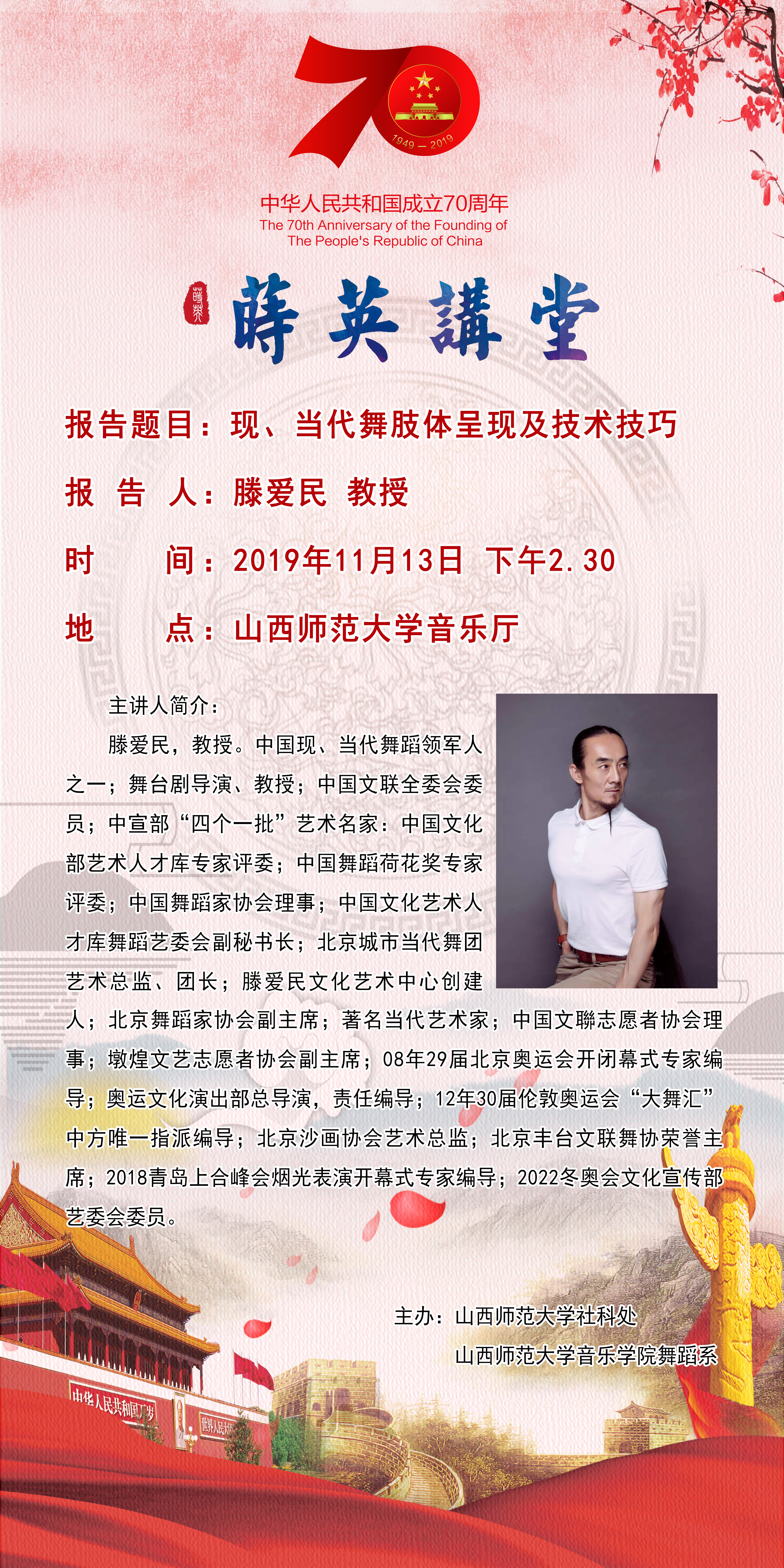 【预告】【莳英讲堂】当代著名舞蹈艺术家滕爱民教授应音乐学院邀请来威尼斯官网作学术报告