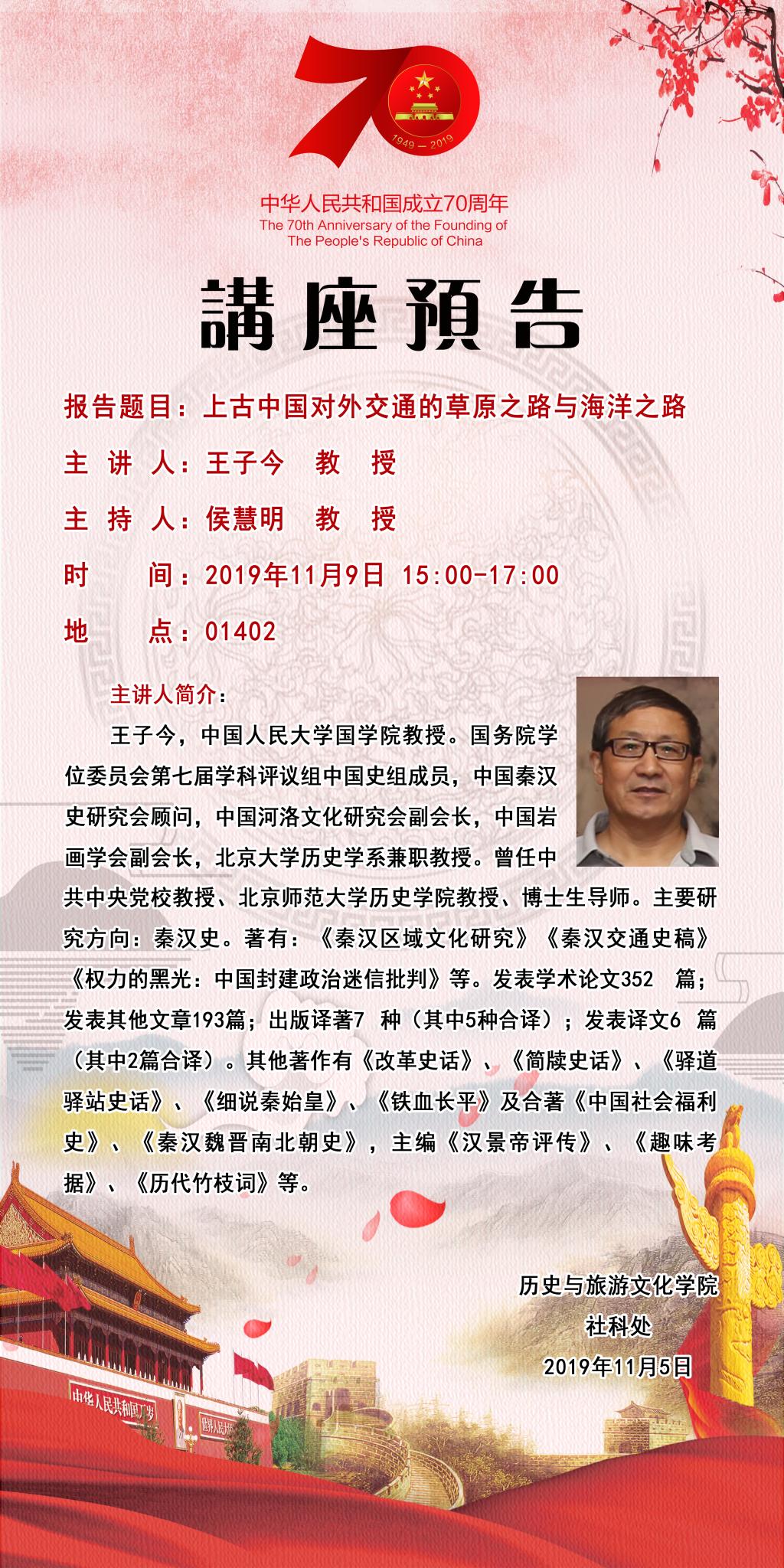 【预告】 中国人民大学王子今教授应历史与旅游文化学院邀请来威尼斯官网作学术报告
