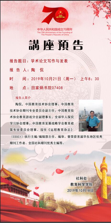 【预告】《远程教育杂志》主编陶侃应教育科学学院邀请来威尼斯官网作学术报告
