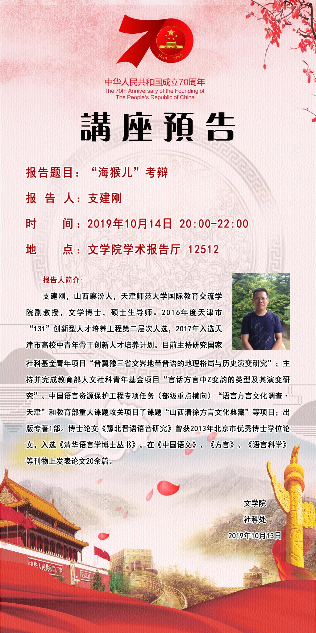 【预告】天津师范大学支建刚副教授应文学院邀请来威尼斯官网作学术报告
