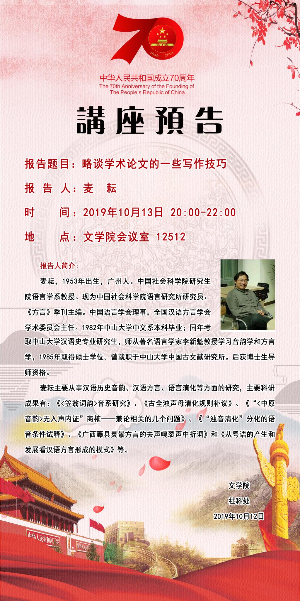 【预告】 中国社会科学院麦耘教授应文学院邀请来威尼斯官网作学术报告
