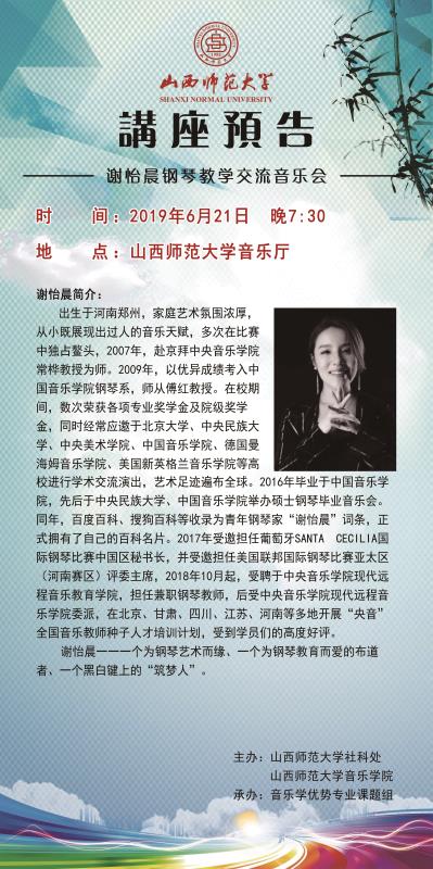 【预告】 中央音乐学院谢怡晨应音乐学院邀请来威尼斯官网交流