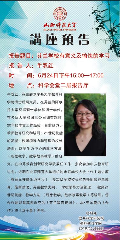 【预告】 芬兰赫尔辛基大学牛双红研究员应邀来威尼斯官网作学术报告