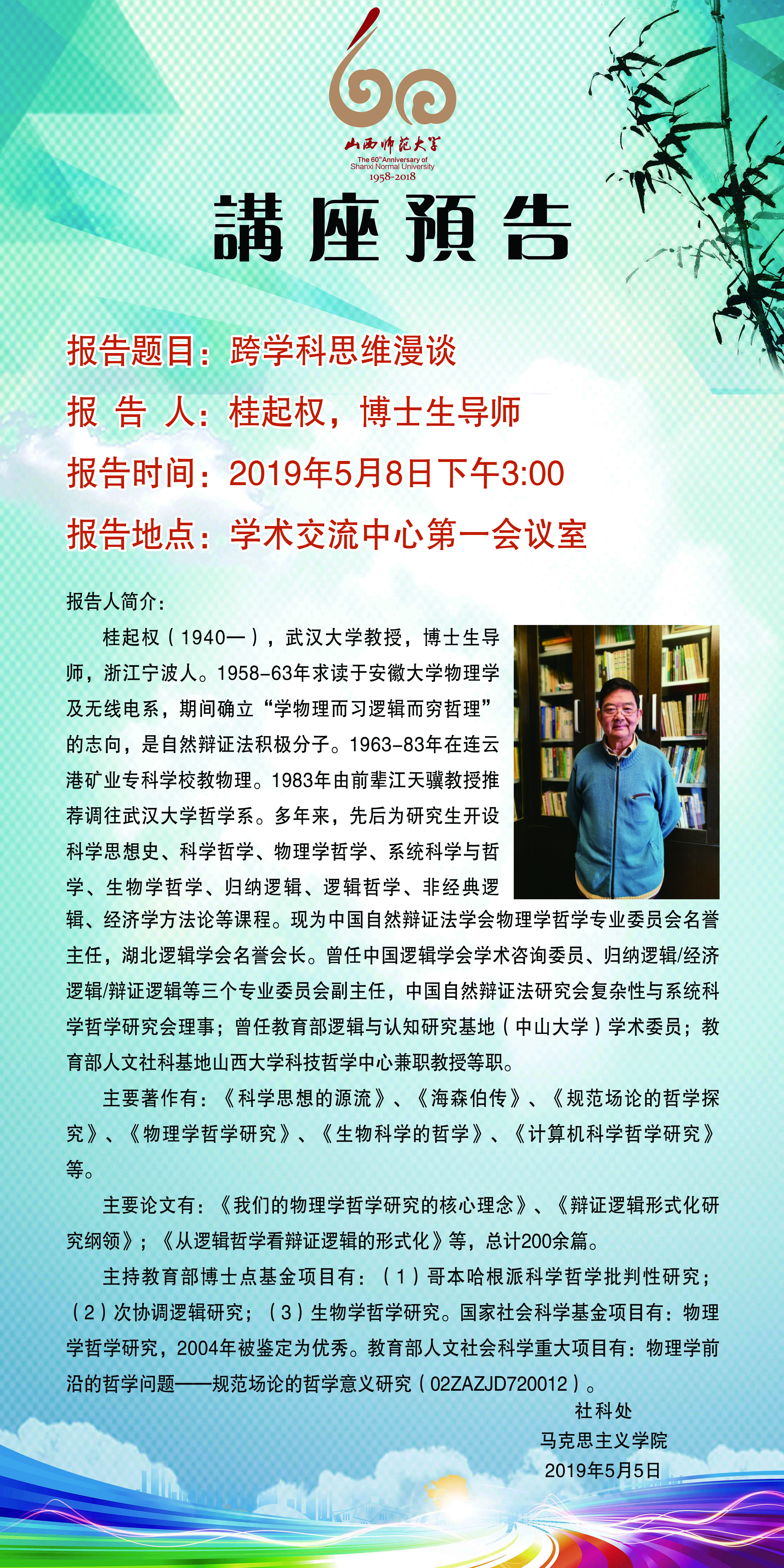 【预告】 武汉大学桂起权教授应马克思主义学院邀请来威尼斯官网作学术报告