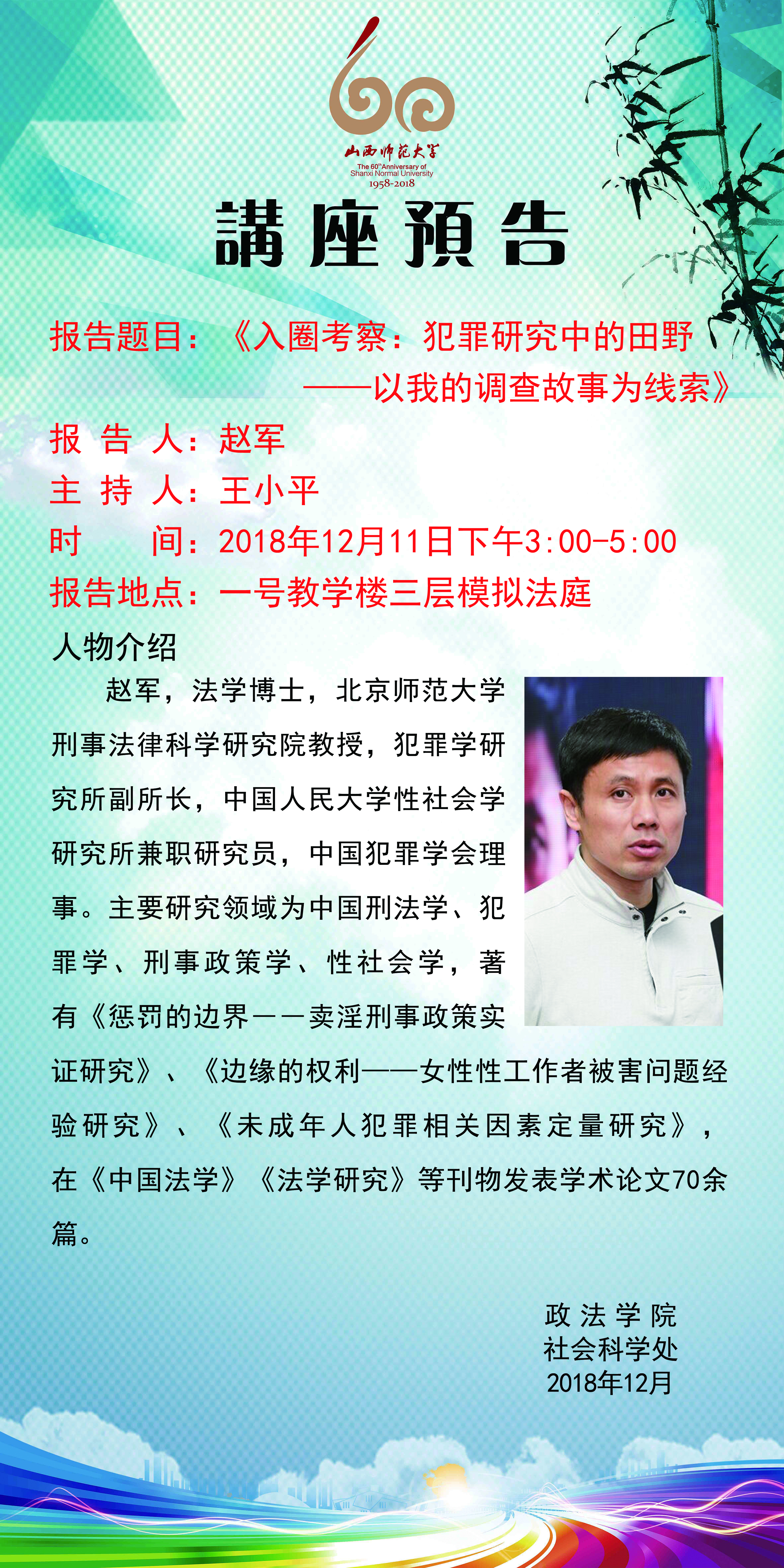 【预告】北京师范大学刑事法律科学研究院赵军教授应政法学院邀请来威尼斯官网作学术报告