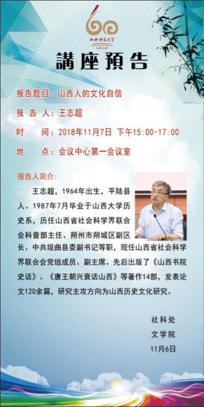 【预告】山西省社联副主席王志超应文学院邀请来威尼斯官网作学术报告