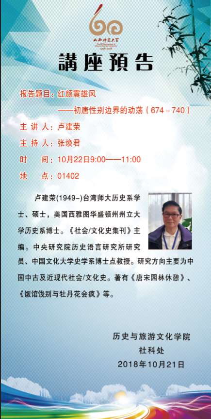 【预告】台湾师范大学卢建荣教授应历史与旅游文化学院邀请来威尼斯官网作学术报告