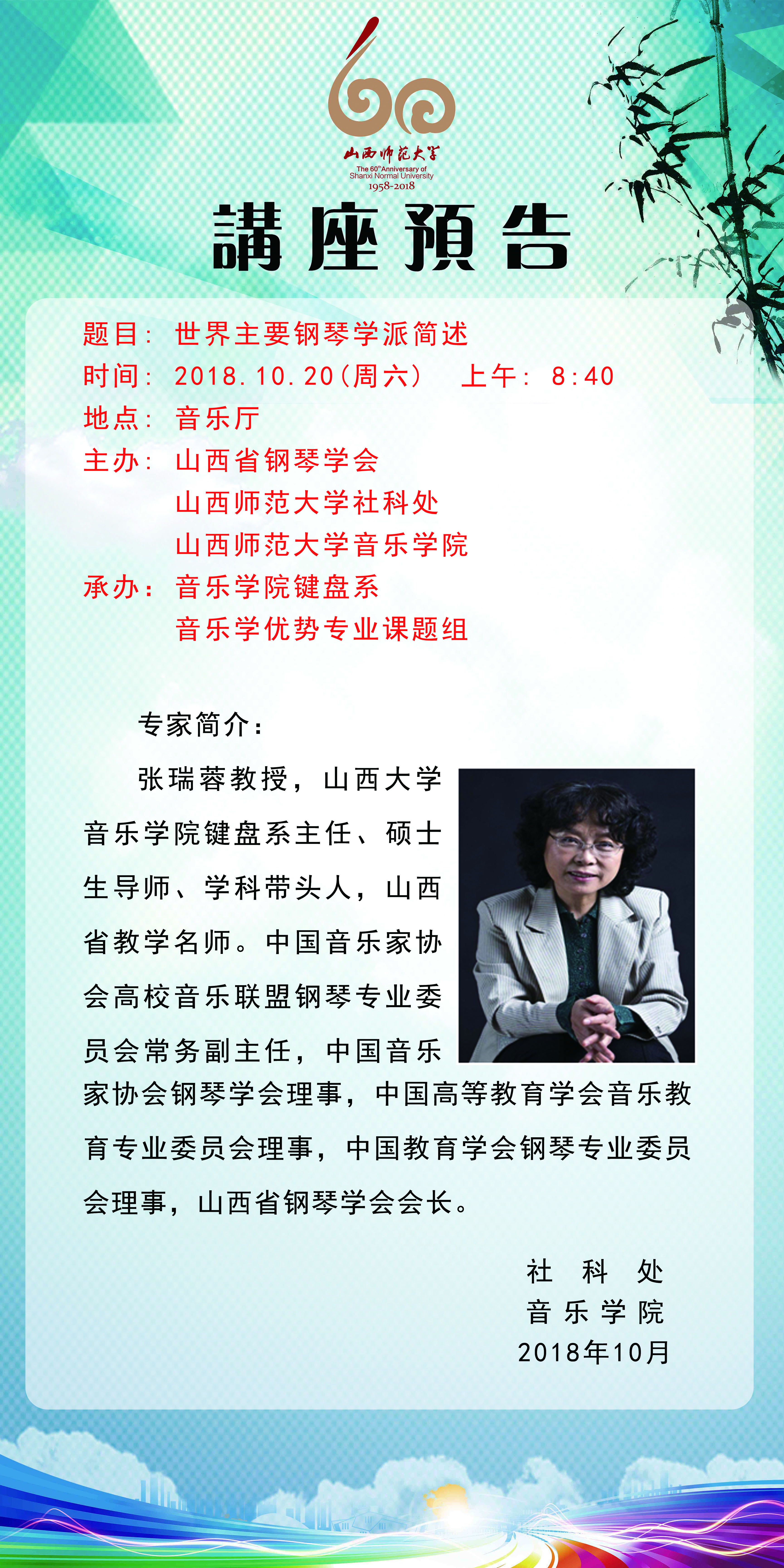 【预告】山西大学音乐学院张瑞蓉教授应音乐学院邀请来威尼斯官网作学术报告