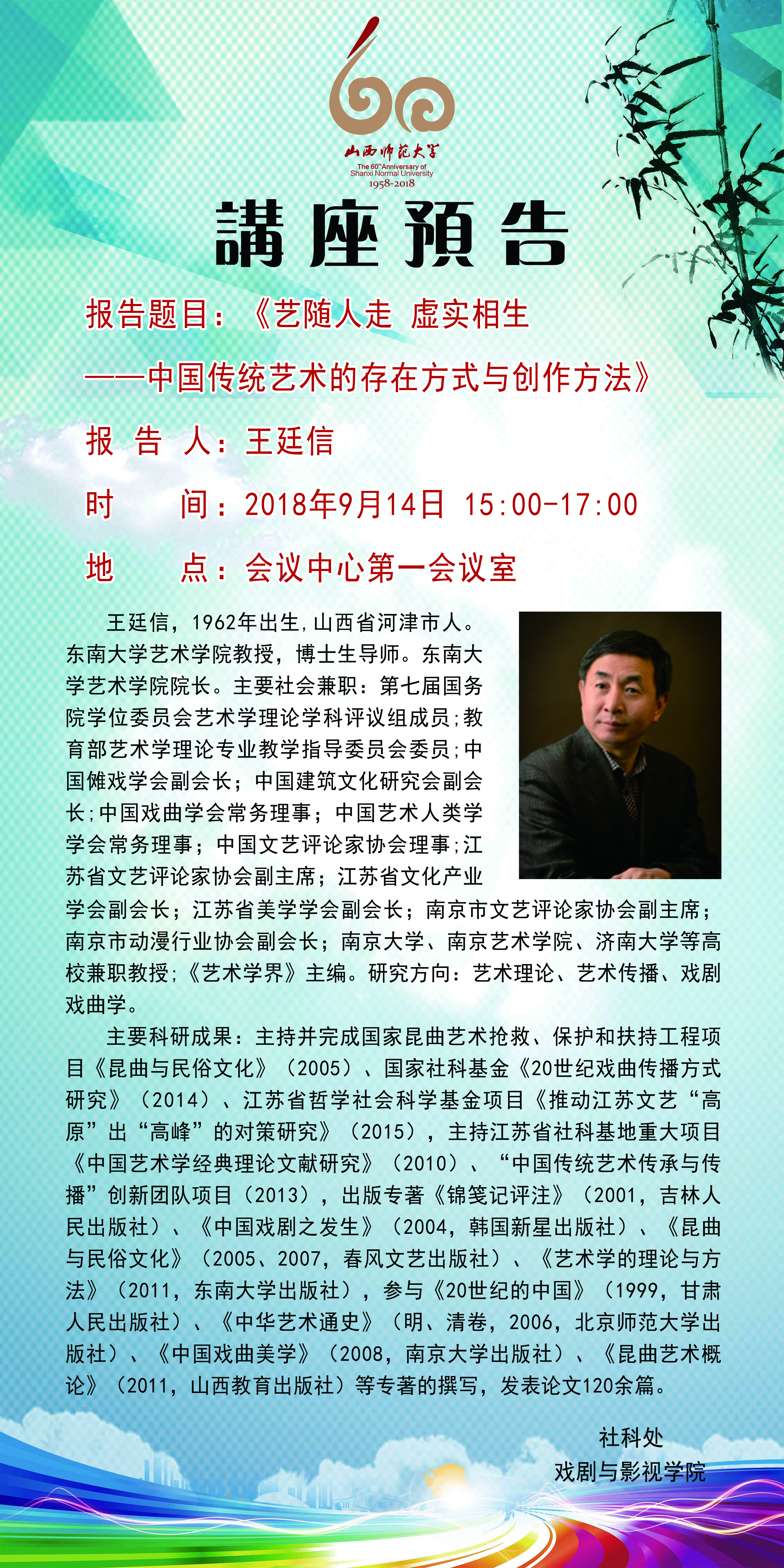 【预告】东南大学艺术学院院长王廷信教授应戏剧与影视学院邀请来威尼斯官网作学术报告