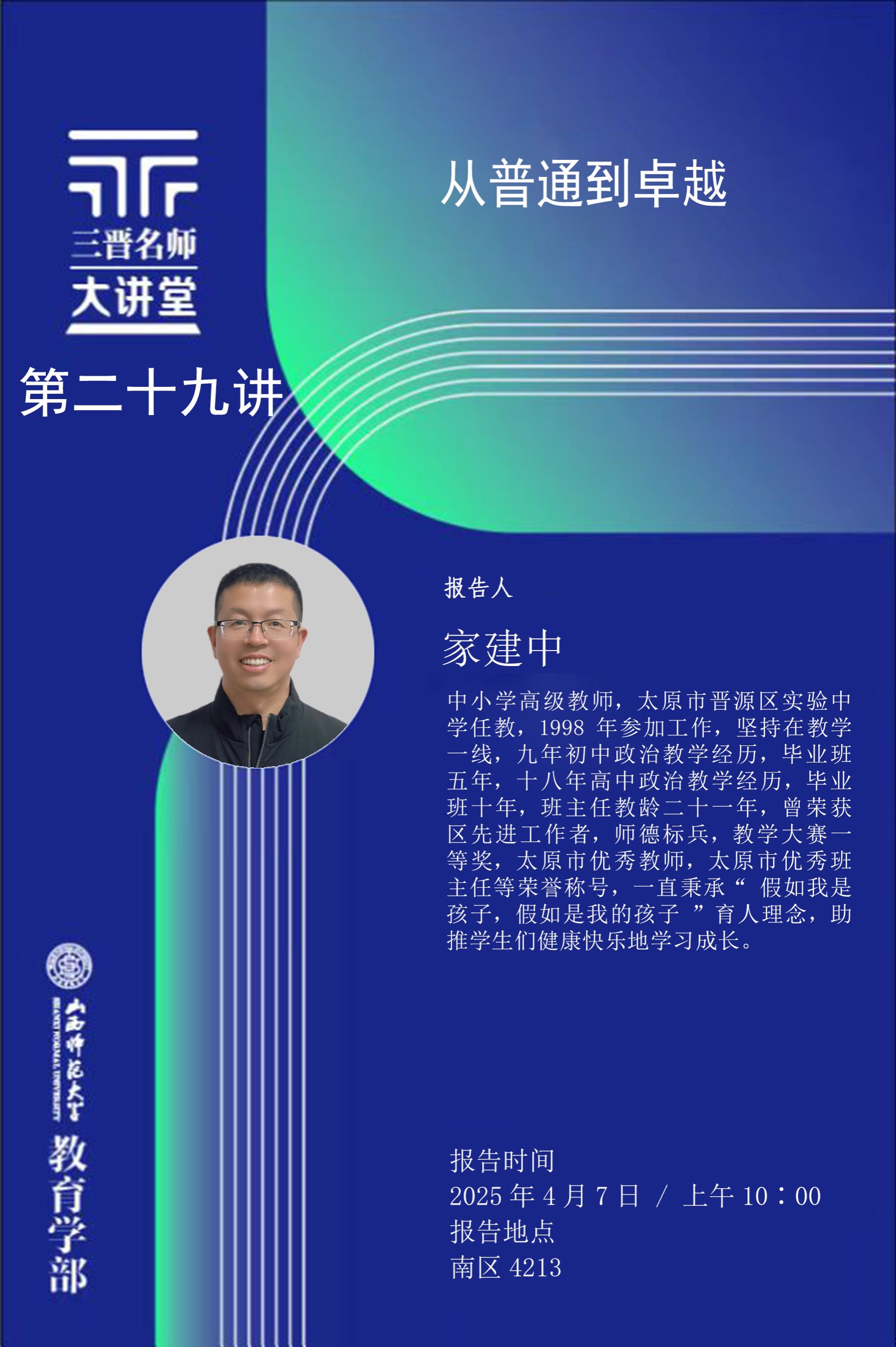 【预告】中小学高级教师家建中应教育学部邀请作学术报告