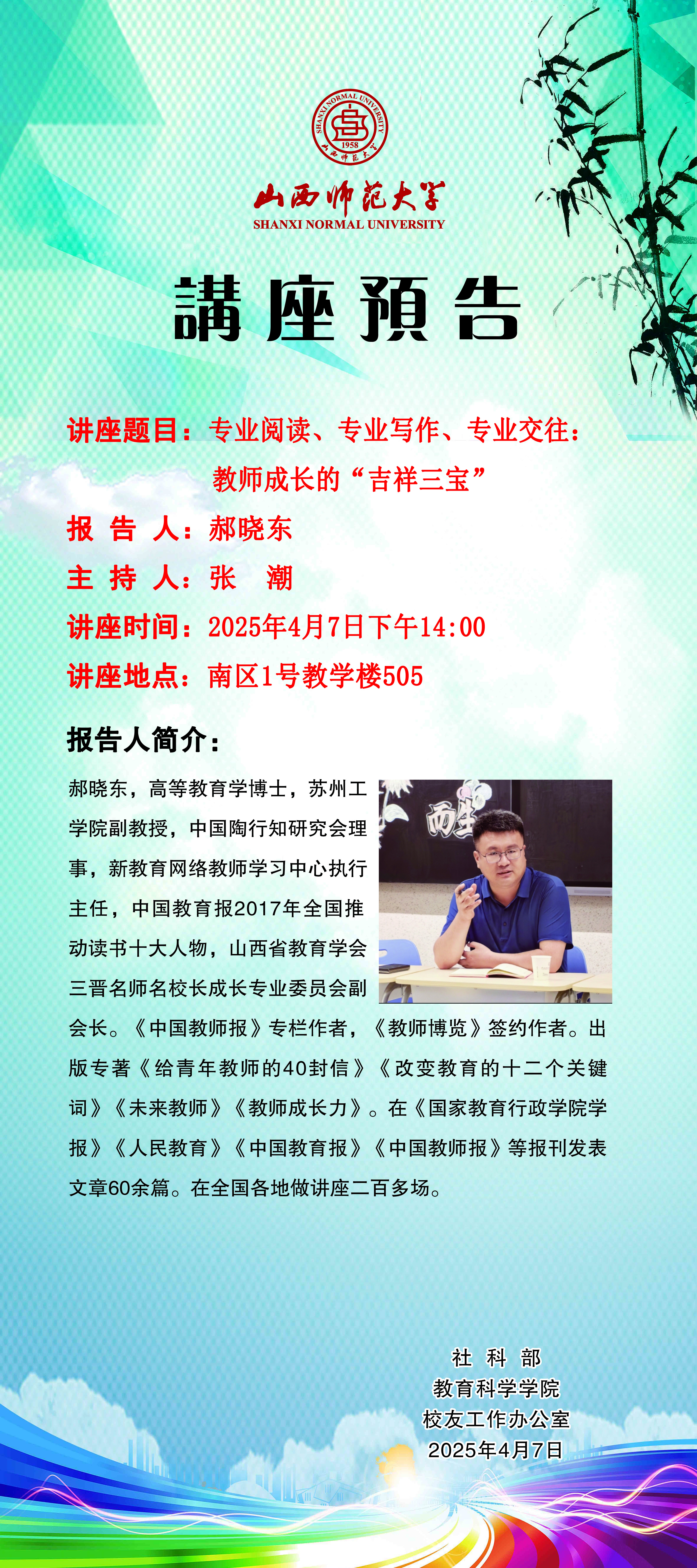 【预告】中小学高级教师家建中应教育学部邀请作学术报告