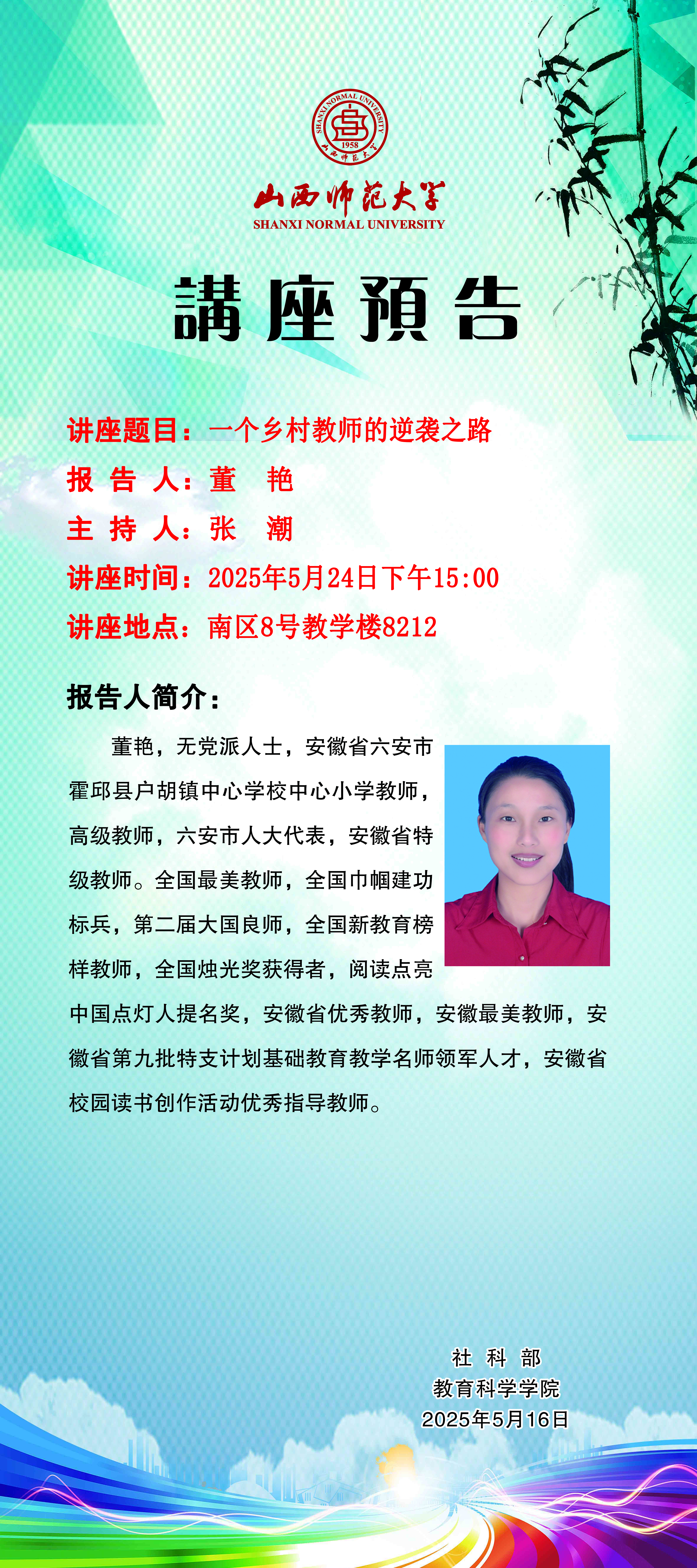 【预告】安徽省特级教师董艳应教育科学学院邀请作学术报告