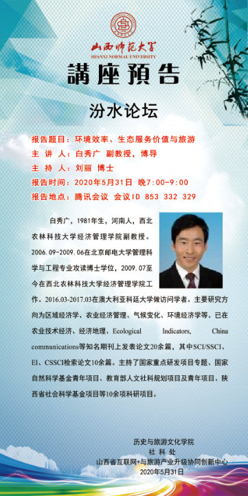 【预告】 西北农林科技大学白秀广副教授应历史与旅游文化学院邀请举办视频直播讲座