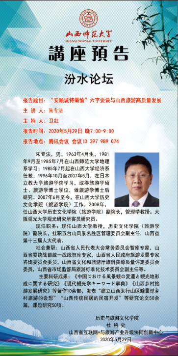 【预告】 山西大学朱专法教授应历史与旅游文化学院邀请举办视频直播讲座