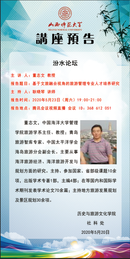 【预告】 中国海洋大学董志文教授应历史与旅游文化学院邀请举办视频直播讲座