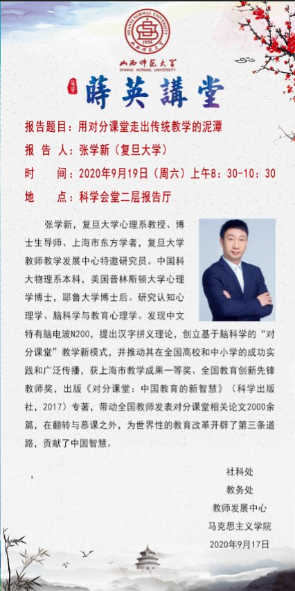 【预告】【莳英讲堂】复旦大学张学新教授应马克思主义学院邀请来威尼斯官网作学术报告