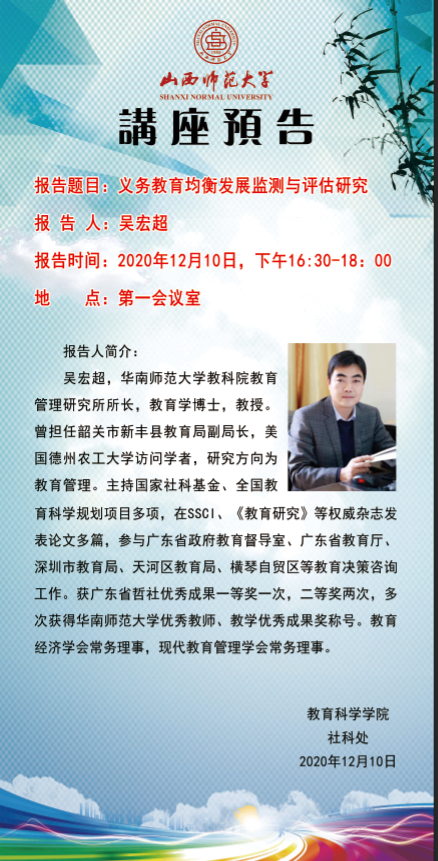 【预告】华南师范大学吴宏超教授应教育科学学院邀请作线上学术报告