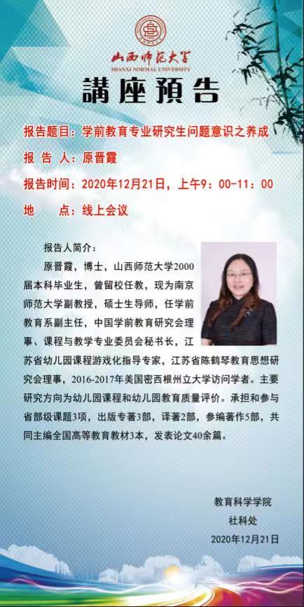 【预告】南京师范大学原晋霞副教授应教育科学学院邀请作线上学术报告