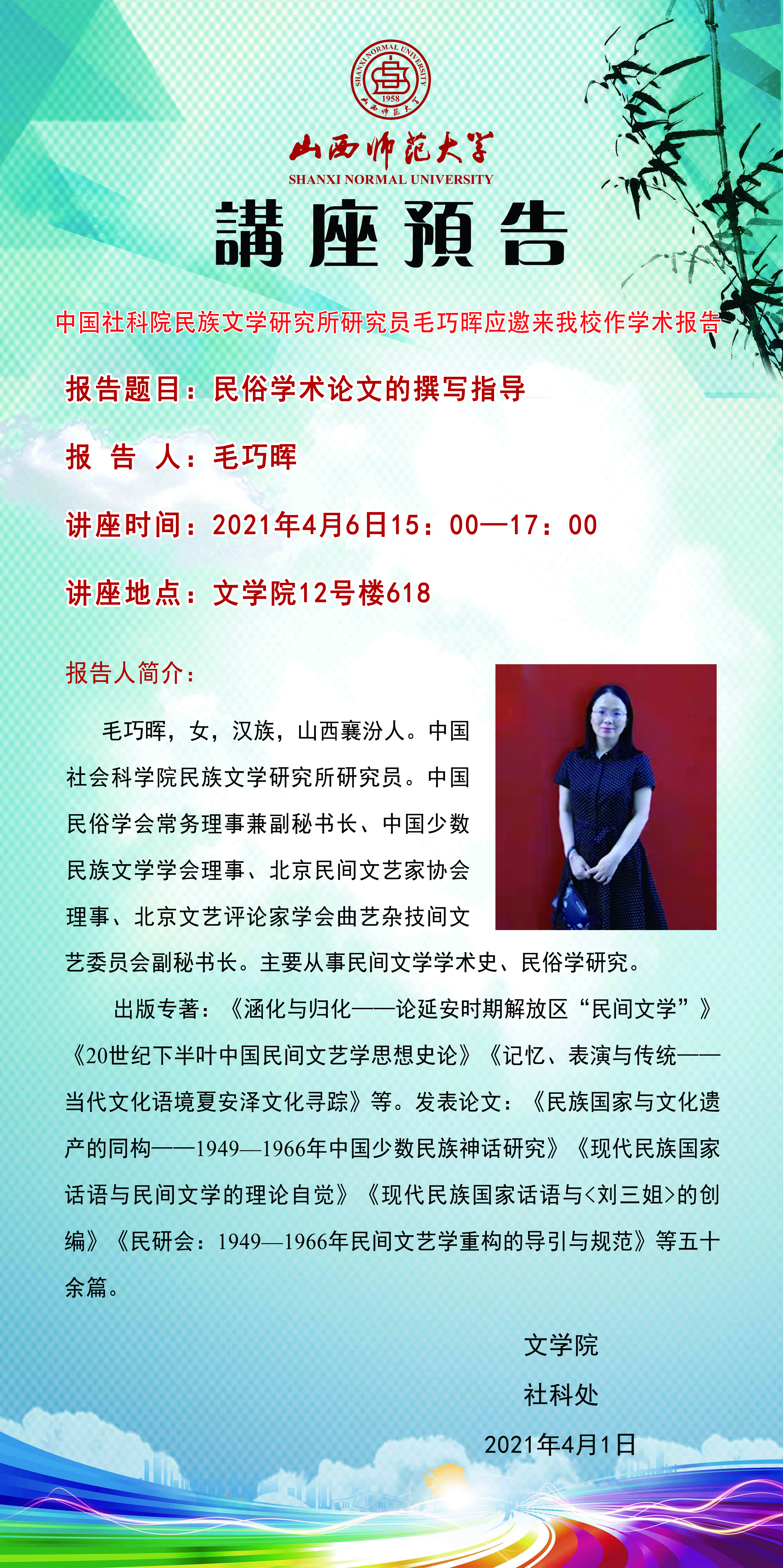 【预告】中国社会科学院民族文学研究所研究员毛巧晖应文学院邀请来威尼斯官网作学术报告