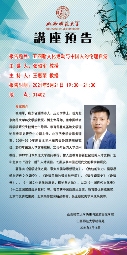 【预告】北京师范大学历史学院张昭军教授应历史与旅游文化学院邀请来威尼斯官网作学术报告