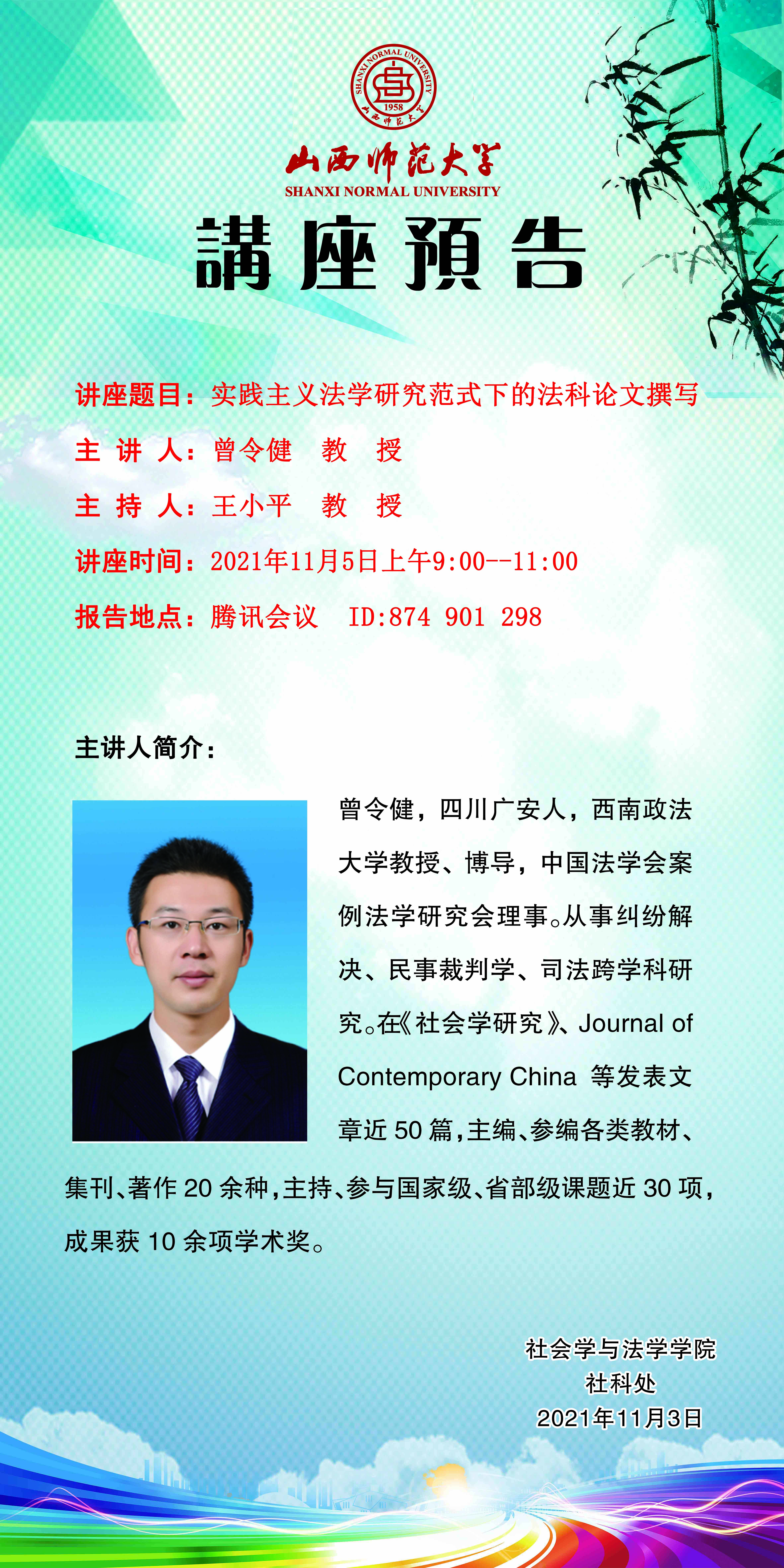 【预告】 西南政法大学曾令健教授应社会学与法学学院邀请作线上学术报告