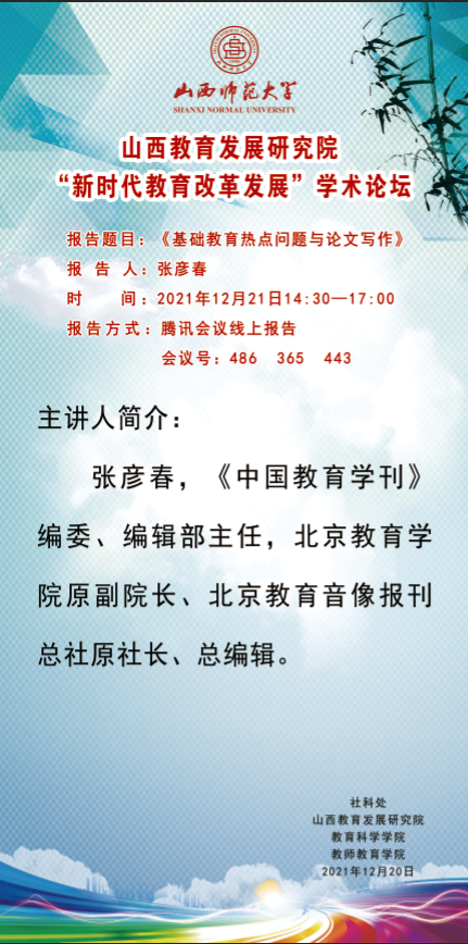 【预告】《中国教育学刊》编辑部张彦春主任应山西教育发展研究院邀请作线上学术报告