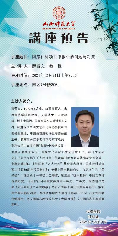 【预告】 太原师范学院薛晋文教授应传媒学院邀请来威尼斯官网作学术报告