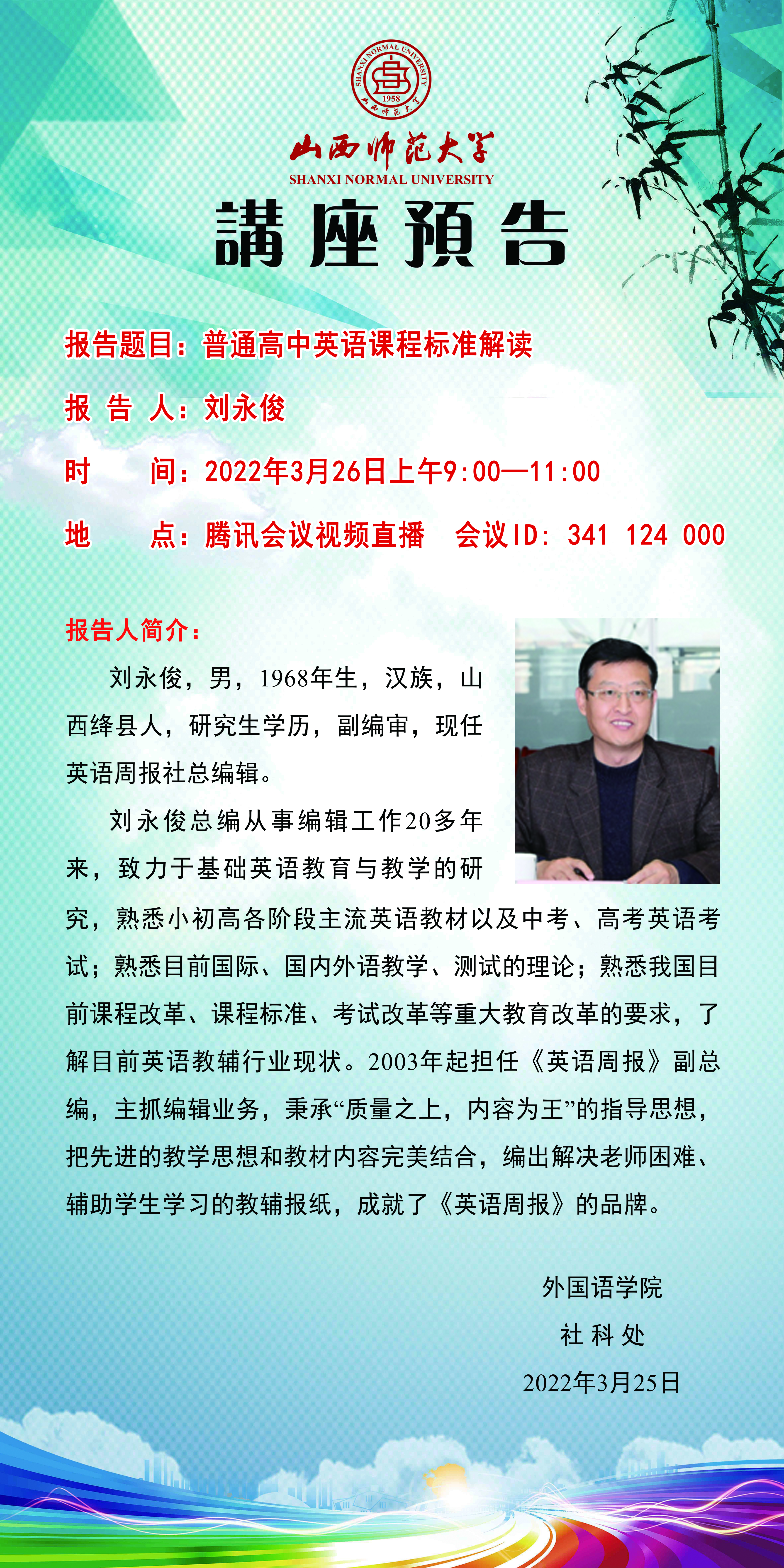 【预告】英语周报社总编辑刘永俊老师应外国语学院邀请作线上学术报告