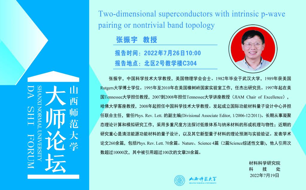 【预告】大师论坛-中国科学技术大学张振宇教授应威尼斯官网邀请作学术报告