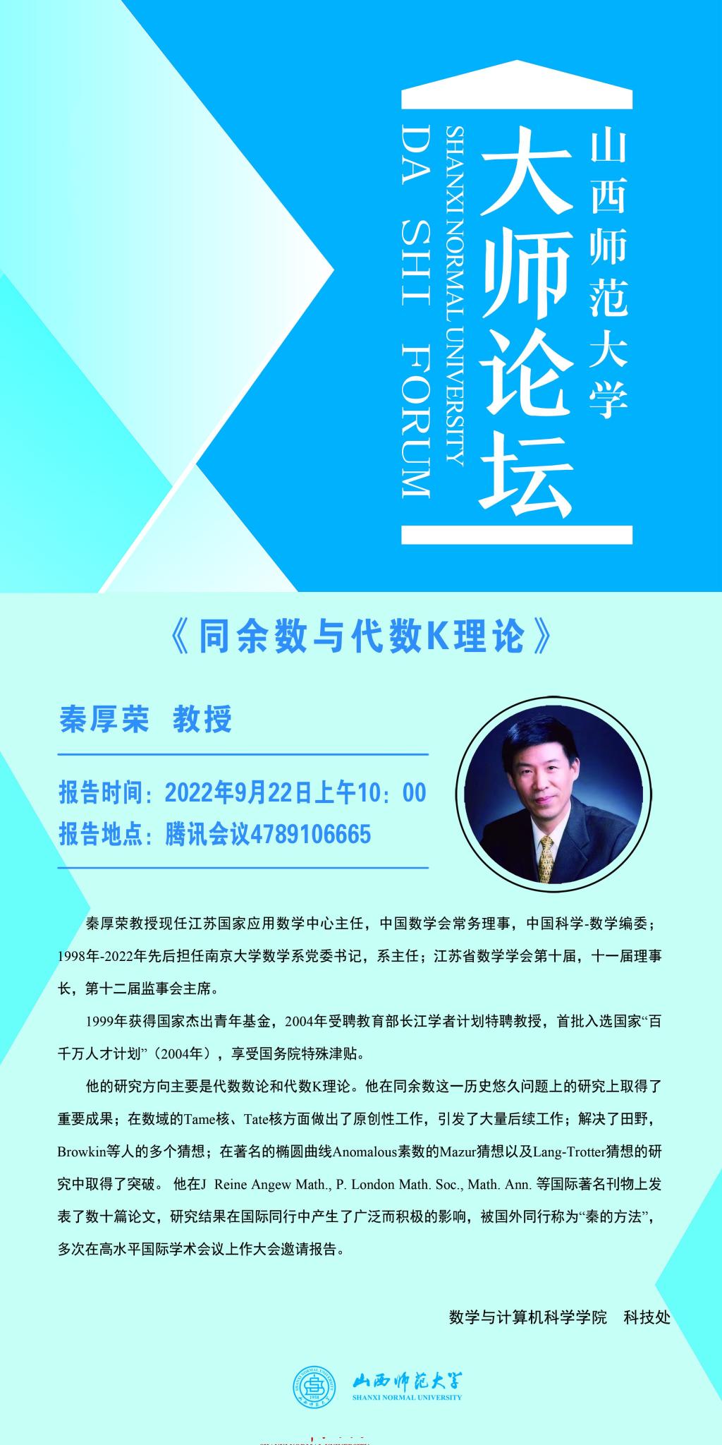 【预告】大师论坛-南京大学秦厚荣教授应威尼斯官网邀请作学术报告