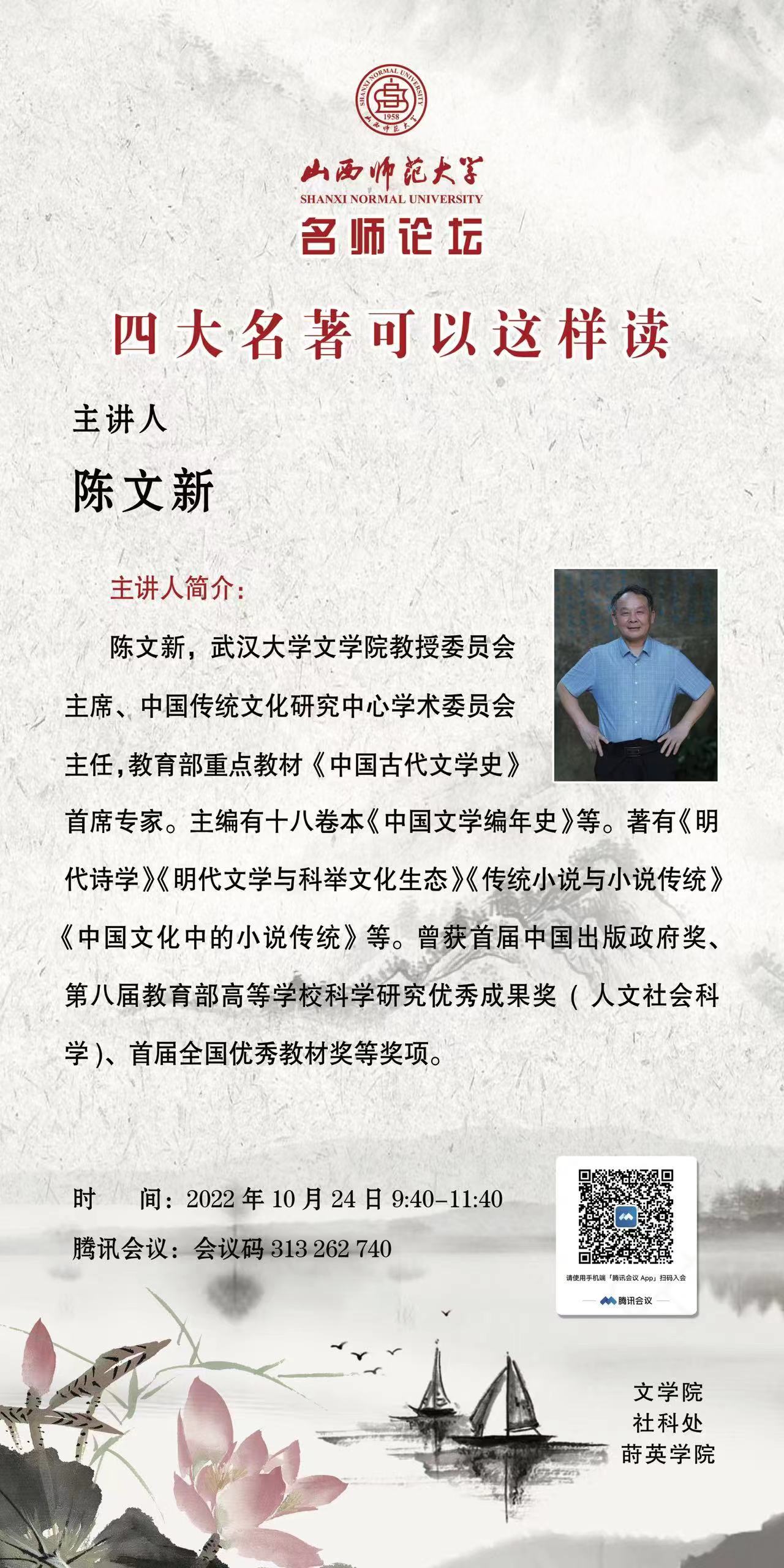 【预告】武汉大学陈文新教授应威尼斯官网邀请作学术报告