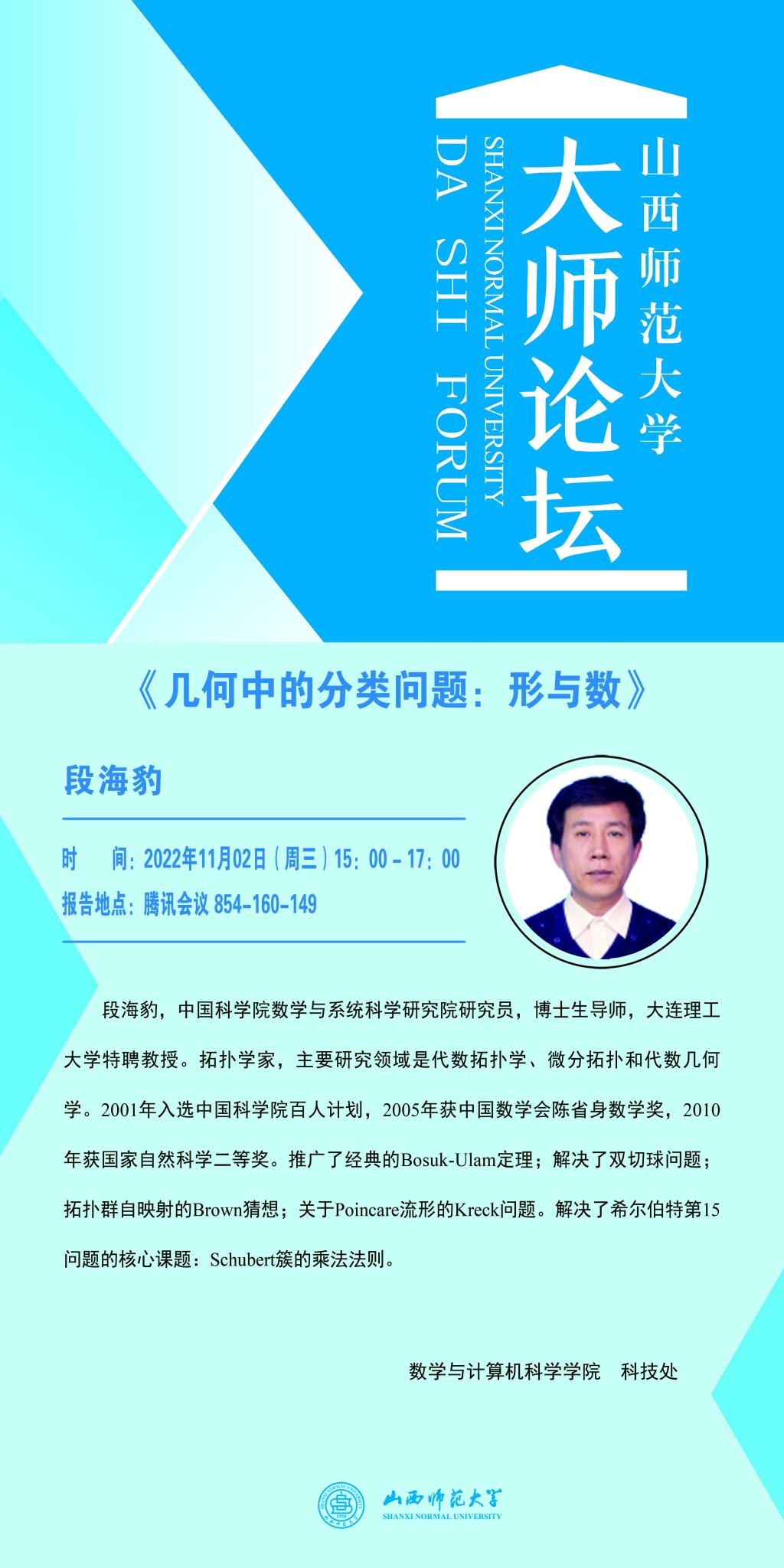 【预告】大师论坛--中国科学院段海豹研究员应威尼斯官网邀请作学术报告