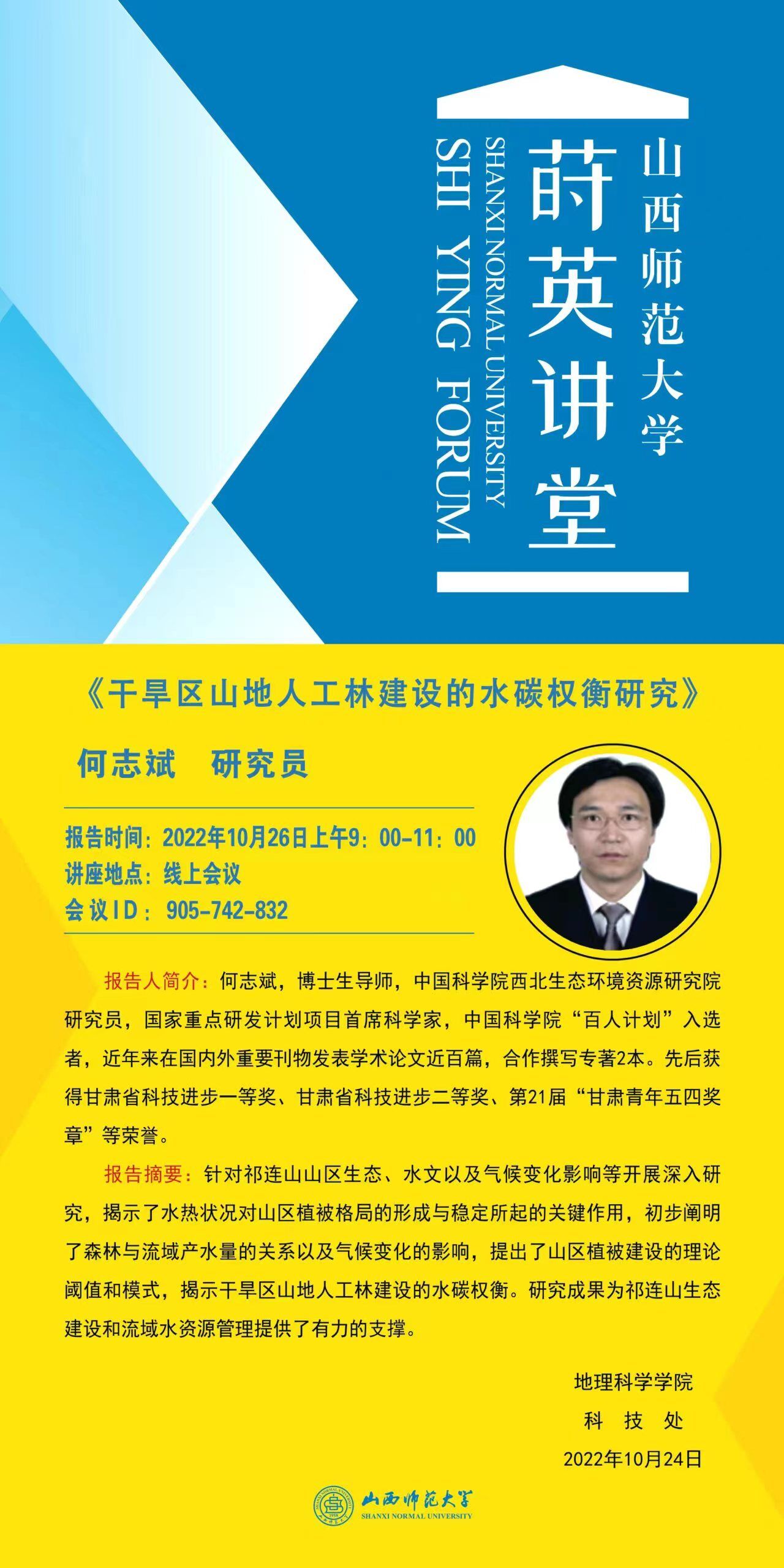 【预告】中国科学院何志斌研究员应威尼斯官网邀请作学术报告