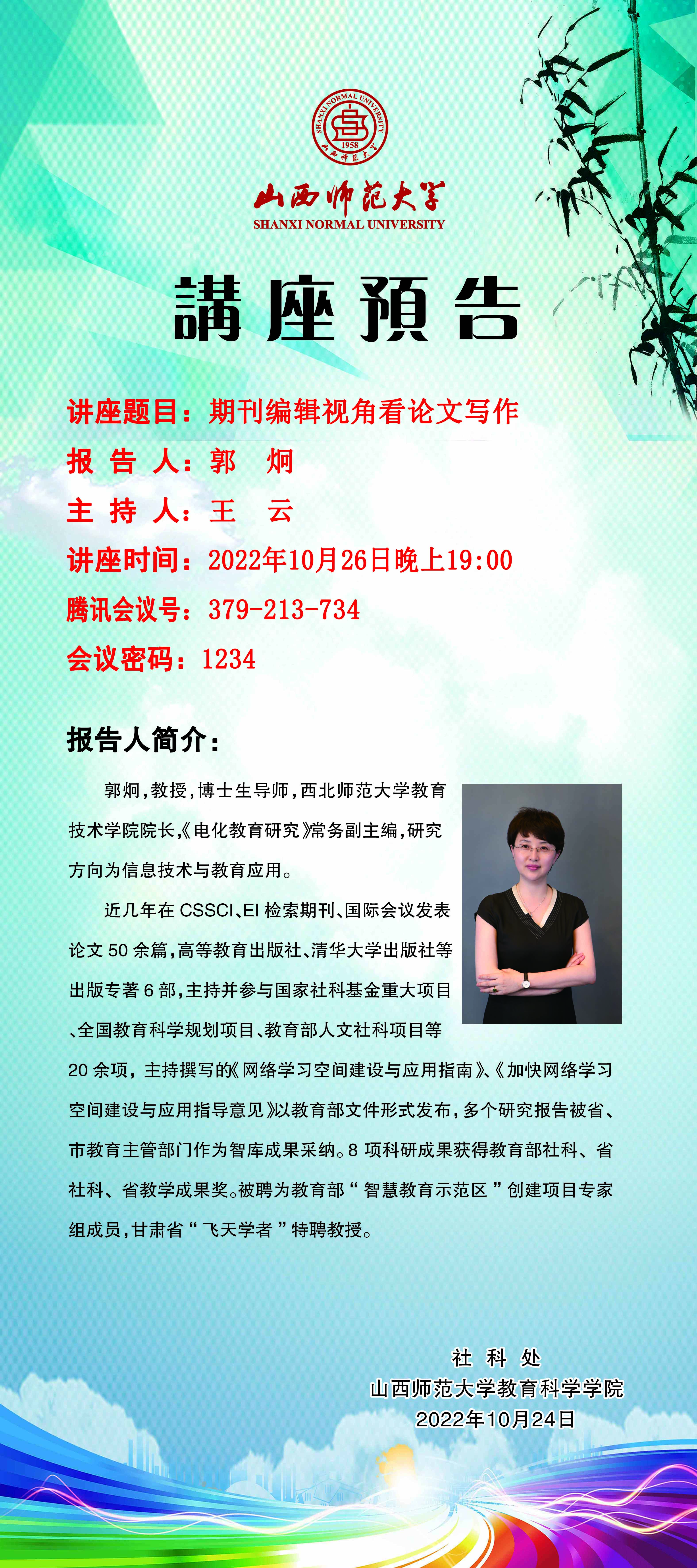 【预告】西北师范大学郭炯教授应威尼斯官网邀请做线上学术报告