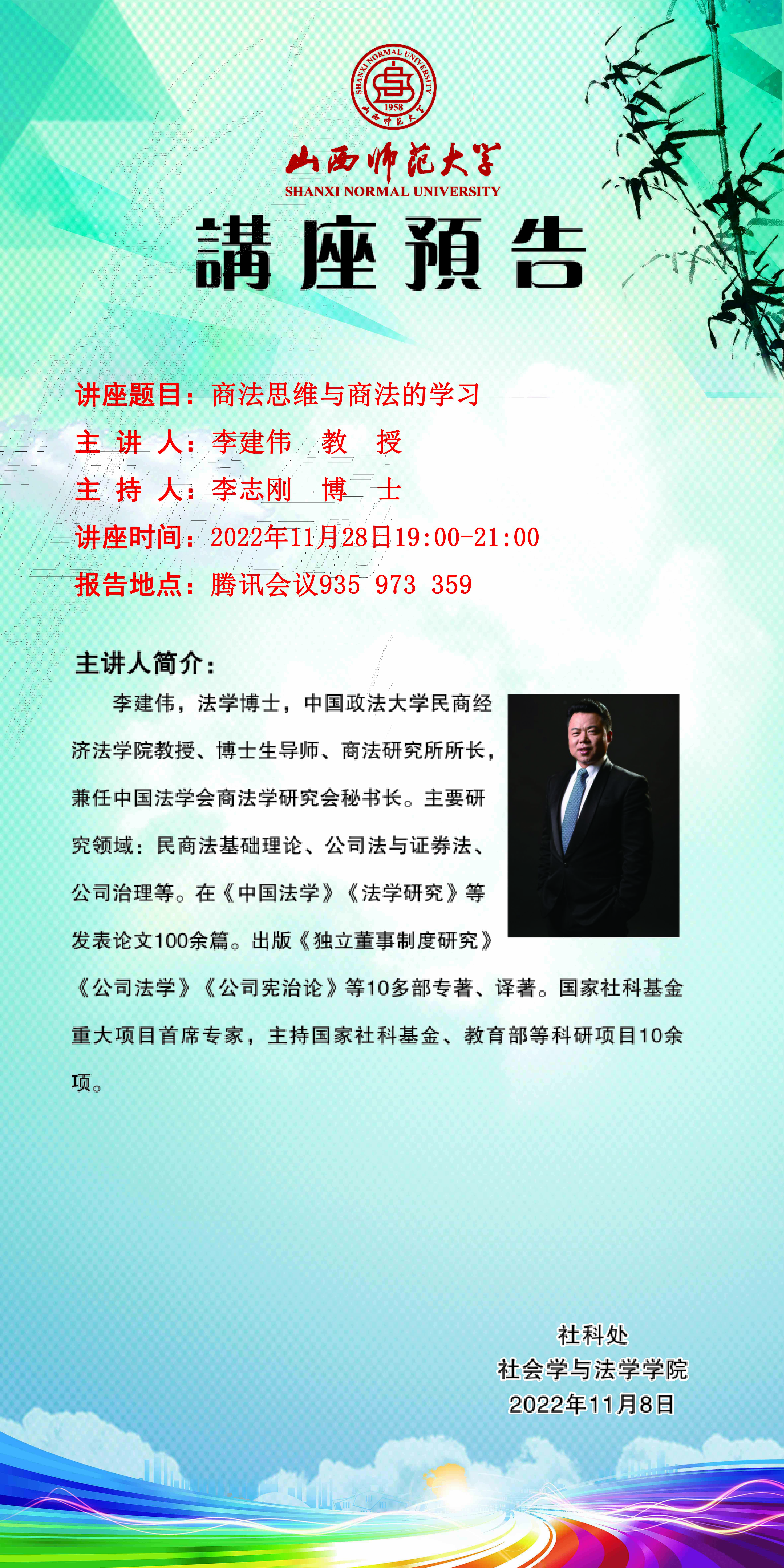 【预告】中国政法大学教授李建伟应威尼斯官网社会学与法学学院邀请作线上学术报告