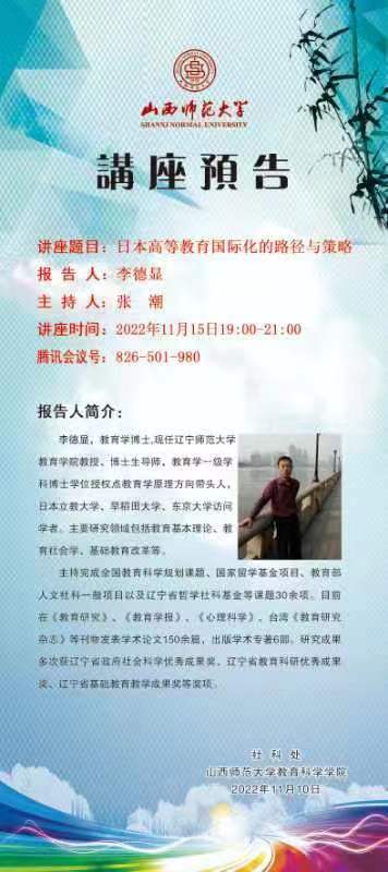【预告】辽宁师范大学李德显教授应威尼斯官网教育科学学院邀请作线上学术报告