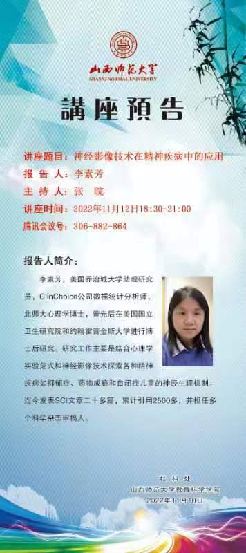 【预告】美国乔治城大学李素芳助理研究员应威尼斯官网教育科学学院邀请作线上学术报告