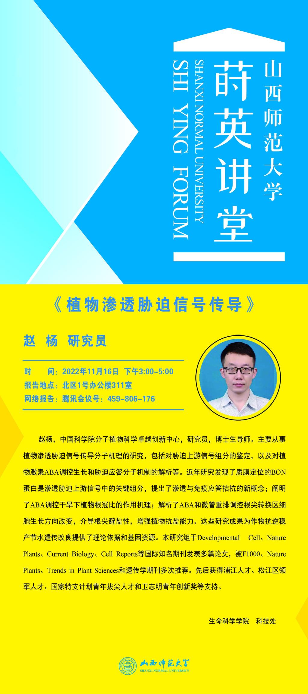 【预告】中国科学院赵杨研究员应威尼斯官网邀请作学术报告