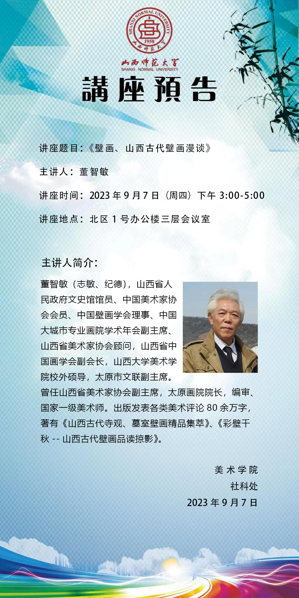 【预告】山西省人民政府文史馆馆员董智敏应威尼斯官网美术学院邀请作学术报告