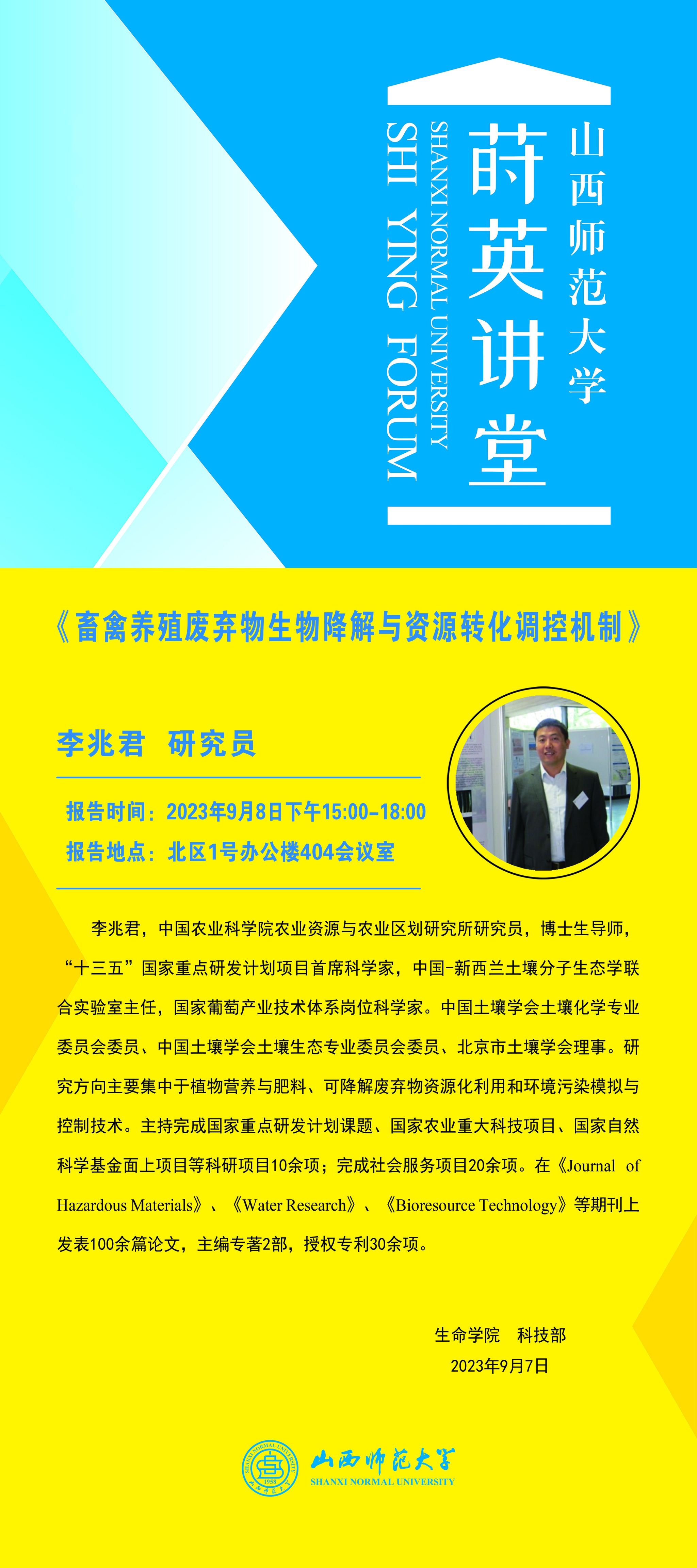 【预告】中国农业科学院农业资源与农业区划研究所李兆君研究员应威尼斯官网邀请作学术报告