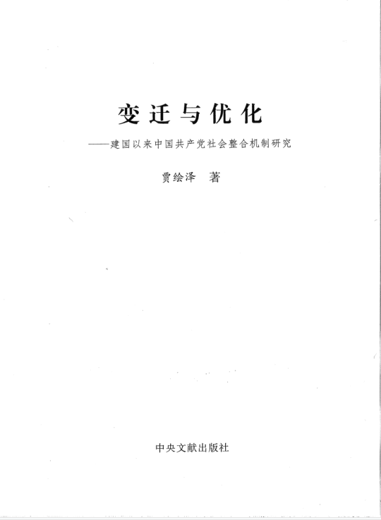 成果名称:变迁与优化:中华人民共和国成立以来中国共产党社会整合机制研究